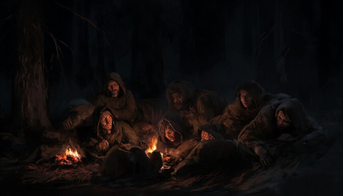 В лесном лагере, где проходят тренировки, зажигались костры, создавая атмосферу уюта и взаимодействия. Люди, словно театральные персонажи, собирались у огня, а поднимающиеся языки пламени создавали завораживающее зрелище. Усталость и холод заставляли участников искать комфорт в укрытиях от ветра.