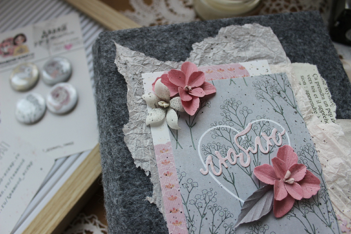 Альбом оформлен в мягких оттенках серого и розового, что передает атмосферу комфорта и тепла. Забавные изображения зверушек на страницах напоминают о важности сохранения внутреннего ребёнка и способности любить. Каждая деталь была тщательно продумана, чтобы создать гармоничное пространство для выражения чувств.