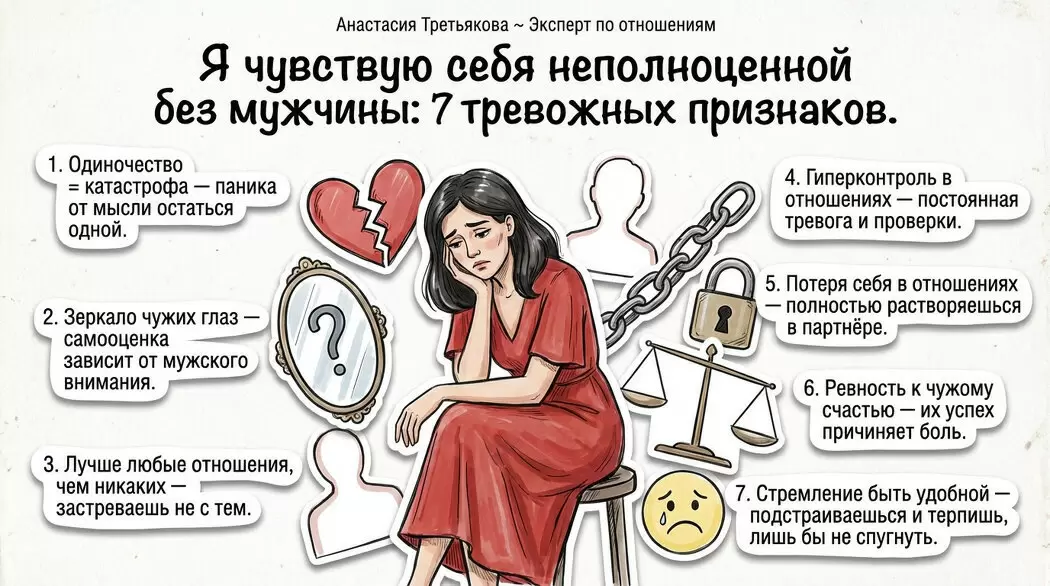 Многие женщины признаются в своих чувствах, ощущая себя неполноценными без мужчины рядом. Постоянная тревога и пустота внутри становятся их спутниками в одиночестве, а стремление к отношениям нарастает до крайности. Подобные переживания требуют внимания, и важно уметь их распознавать.