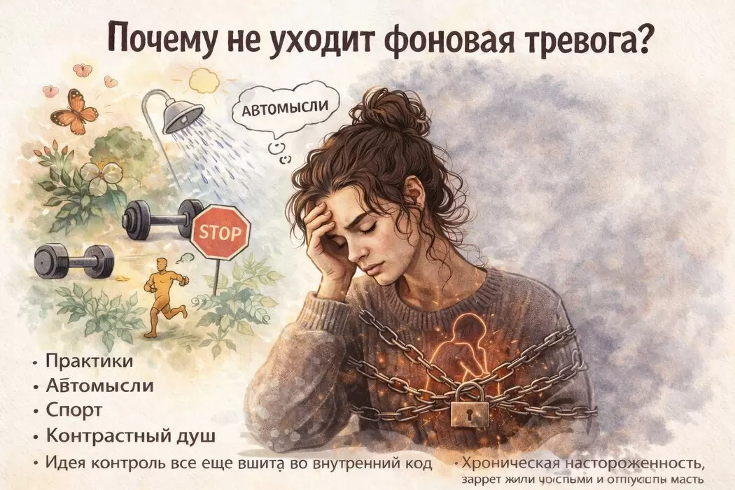 Для многих людей, страдающих от тревожности, период, когда так называемая «фоновая тревога» не исчезает, становится настоящим испытанием. Несмотря на улучшения в восприятии автоматических мыслей и успешную работу над собой, внутреннее напряжение может оставаться.