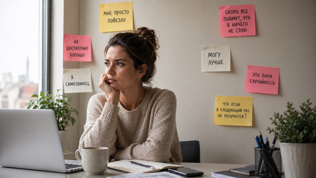 Завершение сложного проекта, долгожданное повышение и искренние комплименты от коллег — казалось бы, все условия для чувства гордости и удовлетворения. Однако вместо этого возникает внутренний голос, который шепчет: "Тебе просто повезло", "Скоро все поймут, что ты не способен на большее", "Это было случайностью".