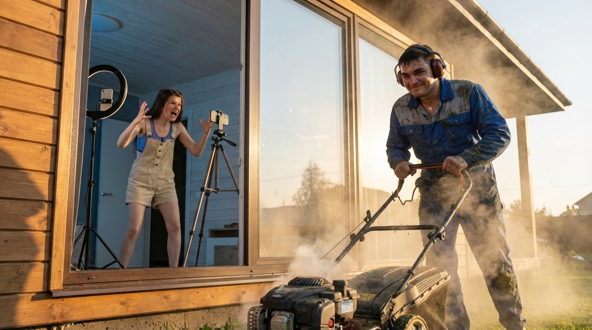 Как и следовало ожидать, возможность ответить на её вторжение представилась, когда он включил газонокосилку. Механическое гудение врезалось в атмосферу её стрима, создавая эффект, будто он разрушал её идеальный мир. Каждый раз, когда она пыталась перекричать шум, он лишь улыбался и продолжал косить.
