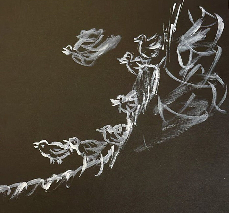 На фоне белых птиц, одна черная фигура становится символом одиночества и страха. В процессе дальнейшей работы с этим участником выясняется, что его история полна травм и тяжелых переживаний. Это преодоление страха – важный шаг к исцелению. Данная реабилитация проходила в Удмуртии, и спустя полгода участник всё ещё хочет поддерживать связь с терапевтами, демонстрируя, как опыт может повлиять на дальнейшую жизнь.