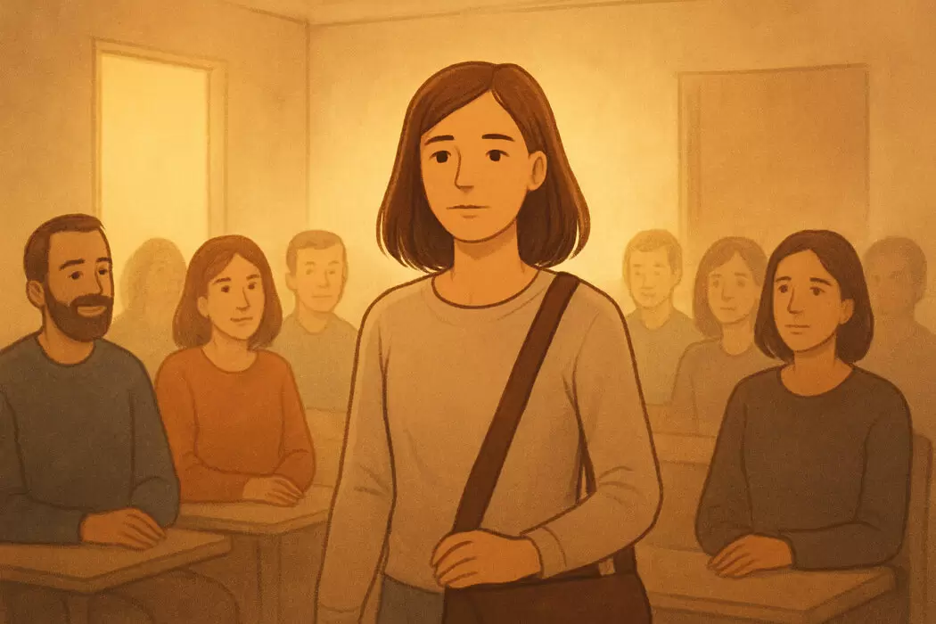 Вскоре в аудиторию вошла студентка, полная надежд и ожиданий. Она улыбнулась новым знакомым, и в ответ получила дружелюбные улыбки от нескольких человек. Атмосфера напоминала старый, добрый класс, где всегда были место для общения и обмена эмоциями. Это раскрепостило девушку, и она почувствовала, что может быть открытой.