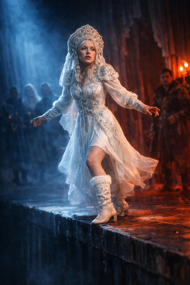Работа Комович отличается от холодного приближения к реальности, характерного для многих цифровых продуктов. Вместо этого она обращается к памяти, создавая Снегурочку, которая излучает тепло и жизнь среди технологического холода. Эта героиня пульсирует в пространстве нейросети, как сон, передавая процесс свободных ассоциаций. Это не просто финальный продукт, а живой поток воспоминаний, где несовершенство становится несущим элементом.