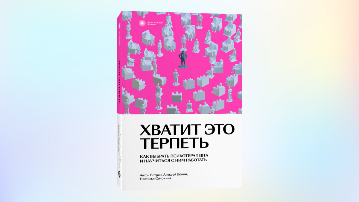 №6 «Хватит это терпеть. Как выбрать психотерапевта и научиться с ним работать» Антона Вотрин, Настасьи Соломиной и Алексея Демина. Эта книга поможет преодолеть барьеры на пути к психотерапевту, разъясняя основные вопросы, которые задают себе многие при выборе специалиста. Подходит как для новичков, так и для тех, кто уже имеет опыт работы с психологами. (Читаемость: 5/5)